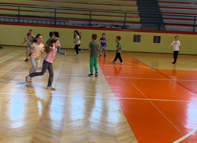 Pedagoginja Vinka i odgojiteljica Krešimira su sa predškolcima našega vrtića 27. 05. 2025. išli posjetiti osnovnu školu prof. Filipa Lukasa. Ova je škola nedaleko od našega vrtića i u njoj će na jesen veći broj naših predškolaca početi svoje osnovnoškolsko obrazovanje. Po dolasku u školsku zgradu bili smo u učionici 3. razreda. Učiteljica je pozvala djecu iz vrtića da sjednu u školske klupe, gdje su mogli popričali s djecom ovoga razreda. Nakon toga im je predložila da nešto nacrtaju i napišu na školskoj ploči. Vrtićkoj djeci je govorila o načinu na koji funkcionira škola. Nakon toga smo išli u razred u kojem se održava sat glazbenoga, u kojem su u to vrijeme bili učenici osmoga razreda. Naša su djeca mogla svirati na klaviru i osmašima otpjevati jednu pjesmu. Na kraju posjeta školi bili smo u dvorani, gdje su se djeca mogla poslužiti rekvizitima kojima se djeca škole služe na satu tjelesnog odgoja.
